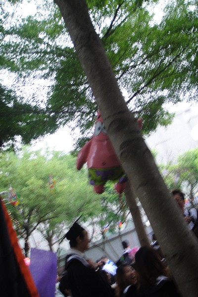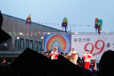 幸好英文系是第一個上台撥穗的系,撥完穗就可以亂跑啦!
