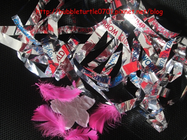 離開之前在地上又撿到彩帶、粉紅羽毛和一個櫻花,